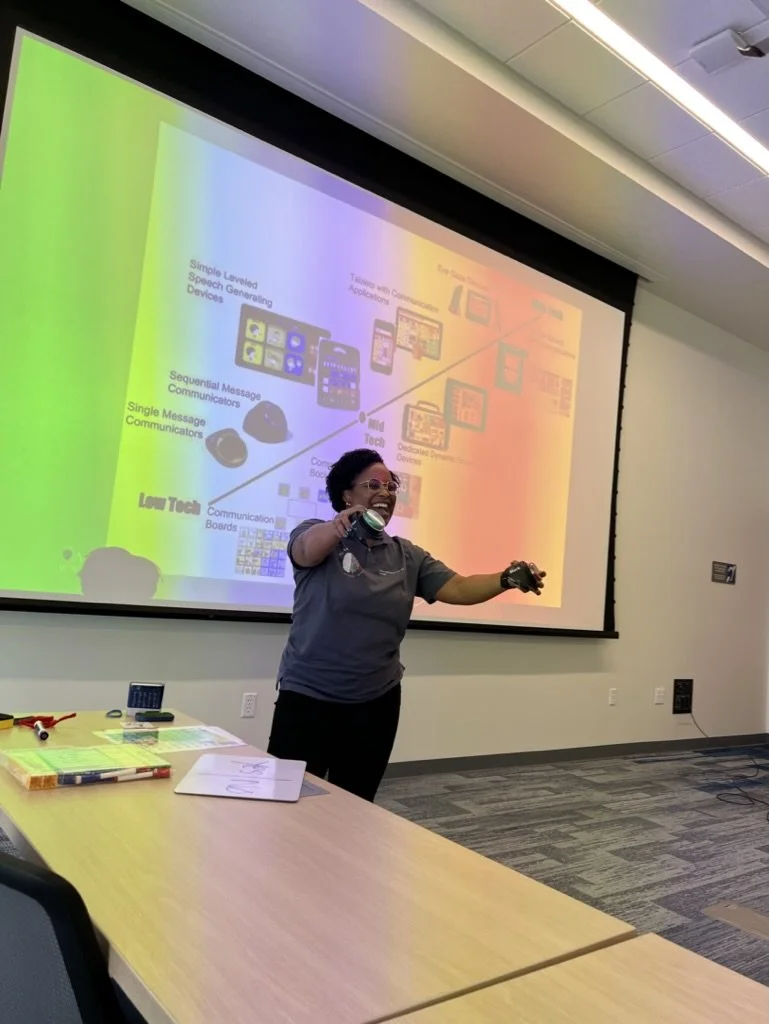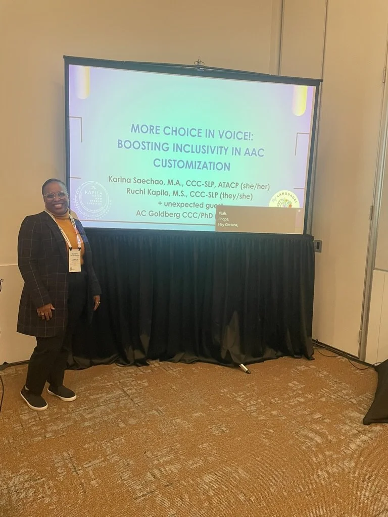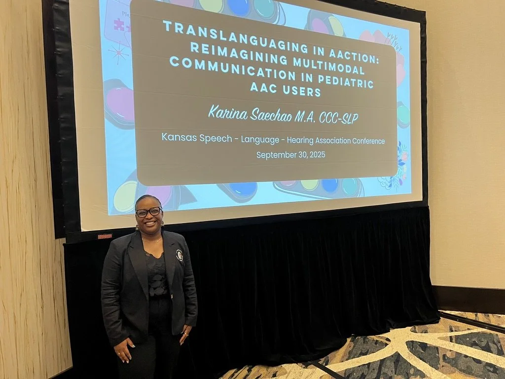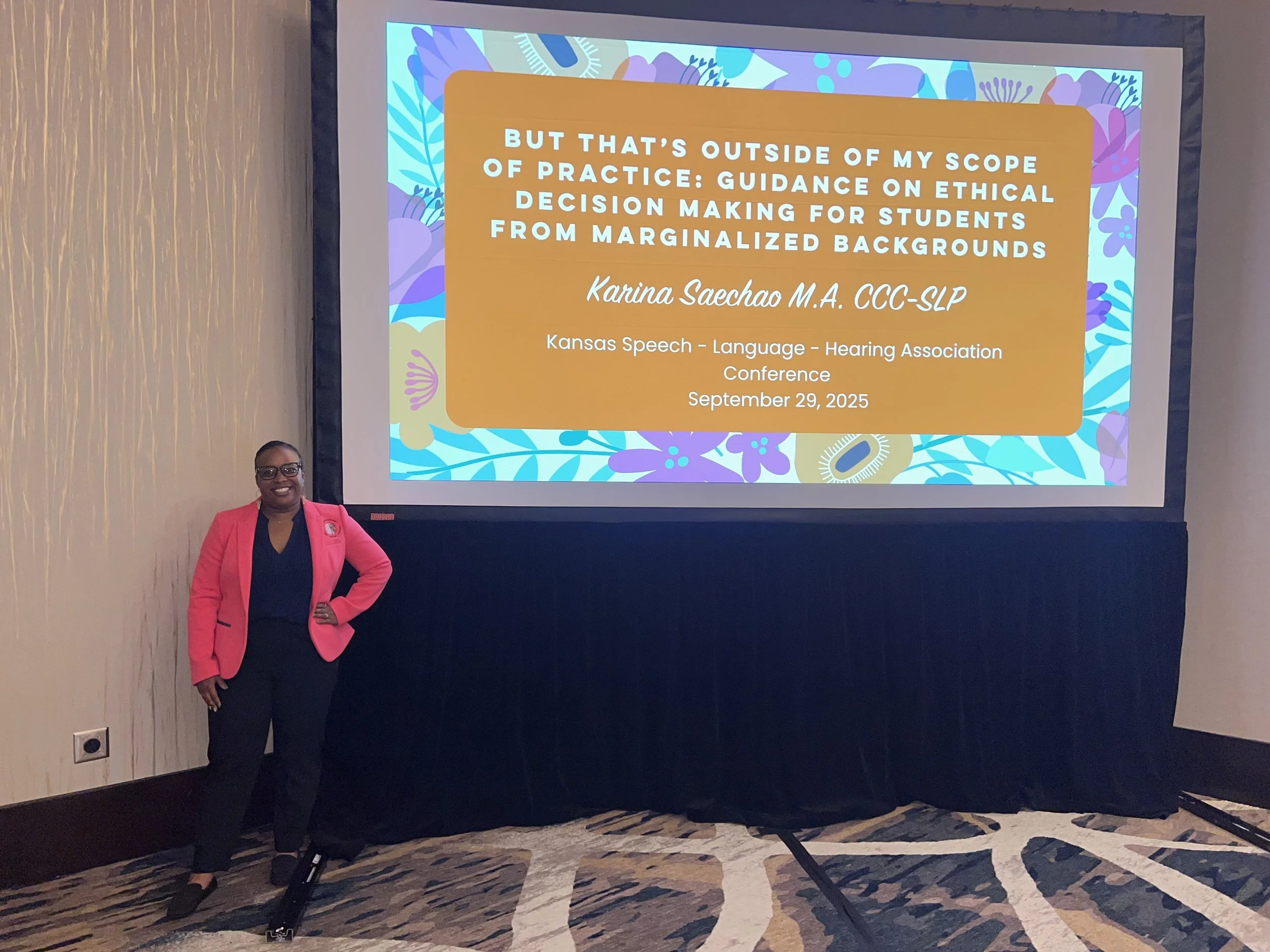 Karina has presented on topics including AAC/multimodal communication, assistive technology for learning, supporting African American English-speaking children, neurodiversity affirming care, translanguaging, ethics, supporting culturally and linguistically diverse children, and more! Karina’s work has been shared at the ASHA Convention, K(ansas)SHA Convention, M(issouri)SHA Convention, Symposium for Research on Child Language Disorders, Learn Play Thrive, Bright Ideas Media, and many more